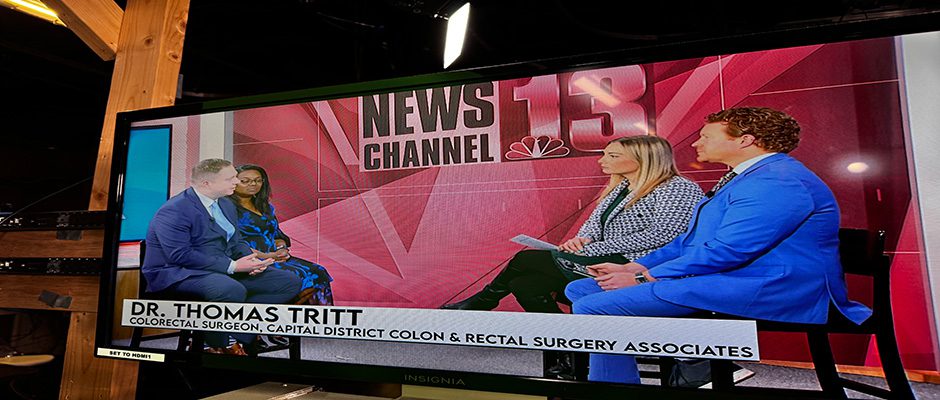 Tyleia Harrell, a patient of Capital District Colon & Rectal Surgery Associates, joined one of the practice’s surgeons, Dr. Thomas Tritt, on WNYT/NewsChannel 13 to stress the importance of colorectal cancer screening.